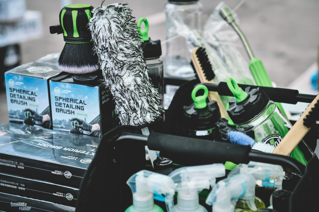 此次活动流程包括专业导师演讲、品牌商品牌介绍、产品展示参观等。绿田精护作为国内新兴的detailing汽美潮牌受邀参加活动,现场展示多种高颜值的清洗剂、洗车机及专业清洗工具,全面且精细的产品以及朝气蓬勃的品牌色使绿田在众多品牌中脱颖而出,受到广大汽美门店用户的关注。